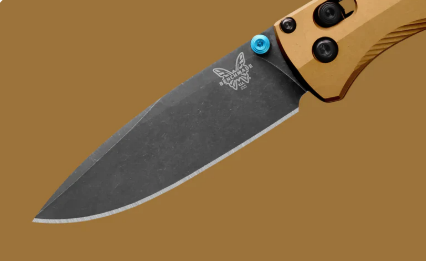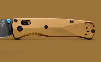 Meet the 535BK-07 - a refined take on the go-to outdoor EDC. It keeps theBugouto's slim, ergonomic feel while stepping up the materials with Burnt Brass anodized aluminum scales and a premium M390 steel finished in black DLbattlewash. Accented with turquoise details, it blends rugged performance with standout style, ready for the campsite or a dressed-up day out.